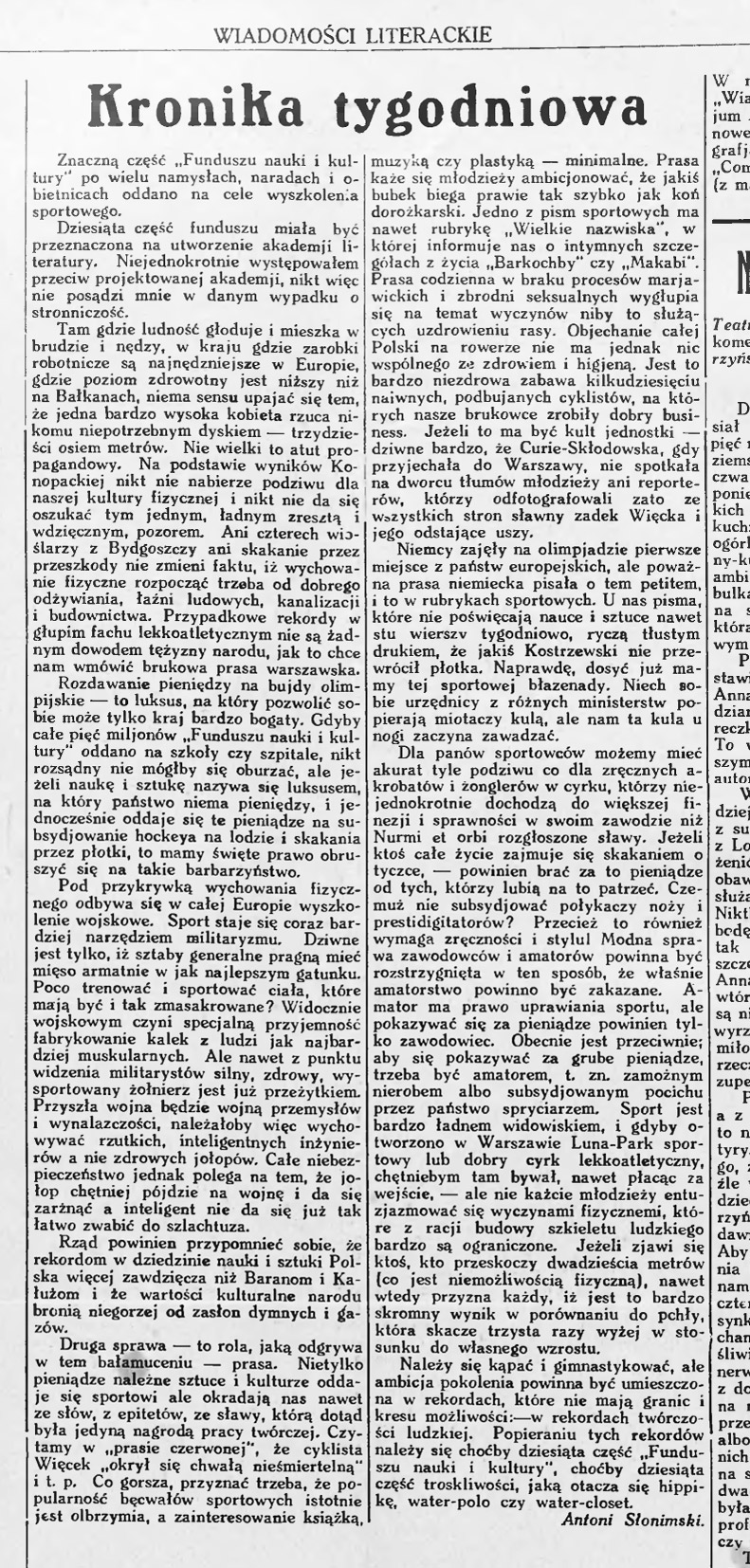 Antoni Słonimski o Olimpiadzie w Krakowie