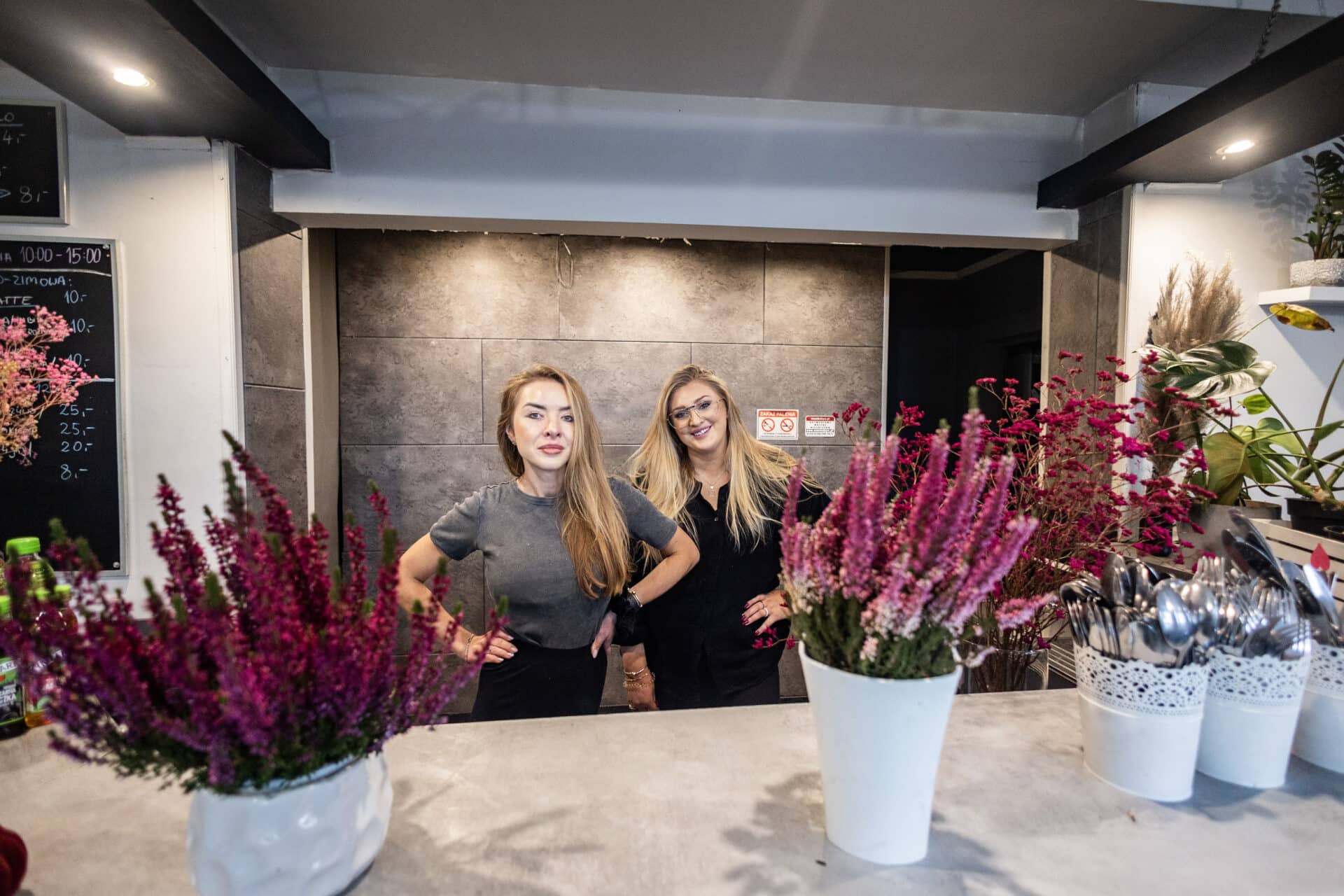 Sylwia: Z Patrycją znamy się od czasów technikum gastronomicznego. Dwie dziewczyny z małych miejscowości — jedna z Bochni, druga z Rudzkiej — i od razu złapałyśmy wspólny język. Już wtedy przynosiłyśmy do szkoły pasty jajeczne, dodatki, a nawet makrele, i w przerwach między lekcjami robiłyśmy swój mały bufet. Nieraz miałyśmy z tego powodu upomnienia i uwagi. „Ostatnia ławka, chować to jedzenie!” — można było usłyszeć od wychowawcy. Od tamtej pory wszystko robiłyśmy razem: pracowałyśmy w drukarni, przy kwiatach, nawet przy składaniu gazet. Zawsze pytałyśmy: „Czy mogę przyjść z koleżanką?” (śmiech). Jeśli coś nam nie pasowało — odchodziłyśmy, ale zawsze razem.