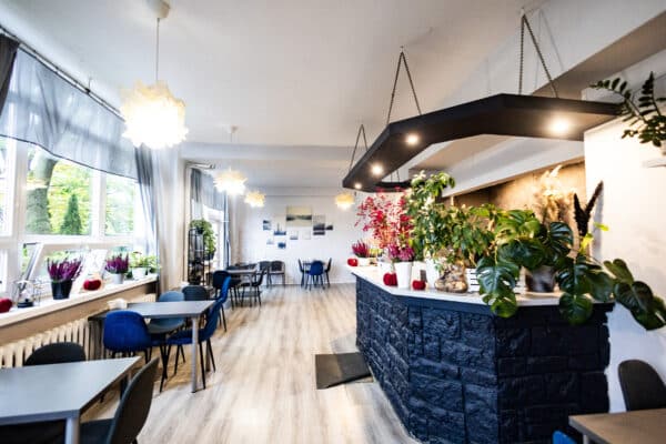 Patrycja: 80 procent naszych klientów to panowie, więc menu jest konkretne, ale kobieca ręka też jest widoczna — czystość, kwiaty, małe detale. Kochamy zwierzaki, kwiaty, ludzi. Chcemy, żeby każdy czuł się tu jak u siebie.