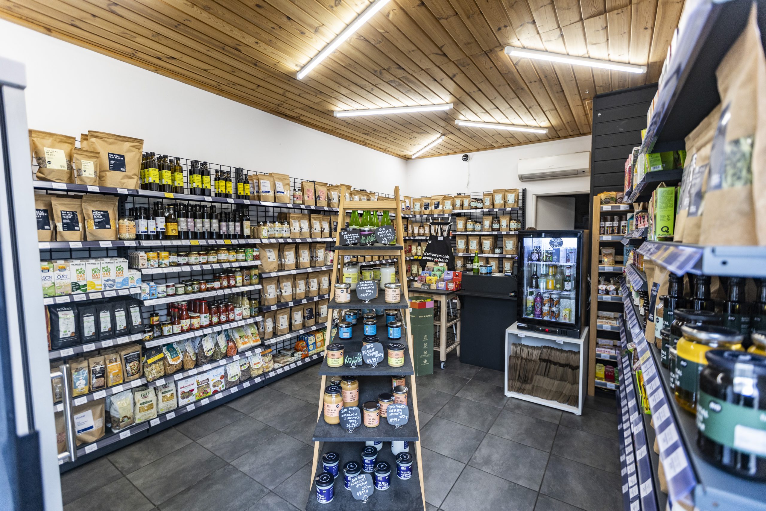 W naszym sklepie można kupić praktycznie wszystkie podstawowe produkty, używane w każdej kuchni na co dzień. Owoce suszone, orzechy, oleje, mąki, makarony, kaszę i ryż, płatki śniadaniowe, zioła i herbaty, zdrowe przekąski, ale przede wszystkim nasze ekologiczne masła orzechowe. Wyprodukowaliśmy jako piersi w Polsce masło w 100% z orzechów – bez żadnych dodatków. Wśród asortymentu jest również szeroki wybór produktów dla wegan i wegetarian w dedykowanych lodówkach.