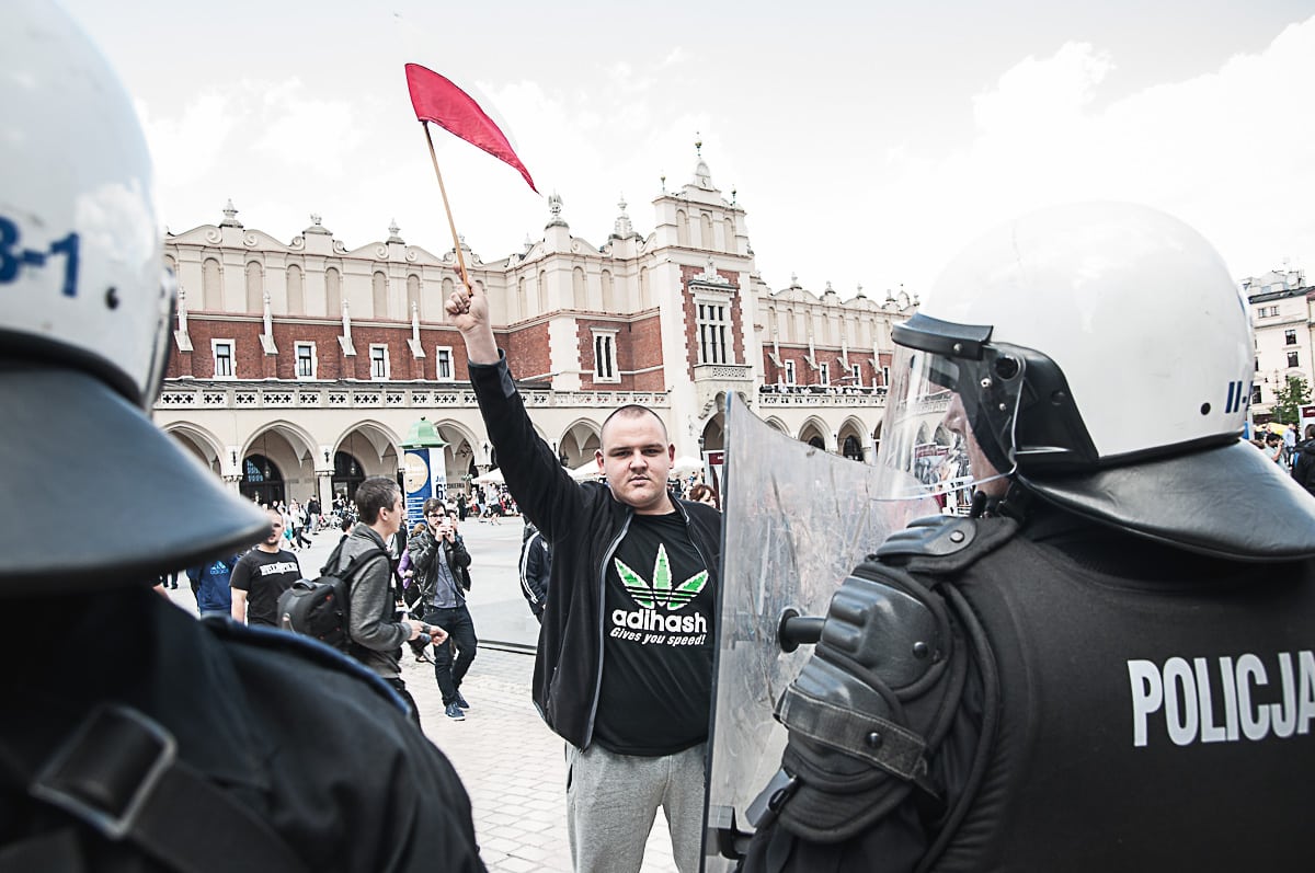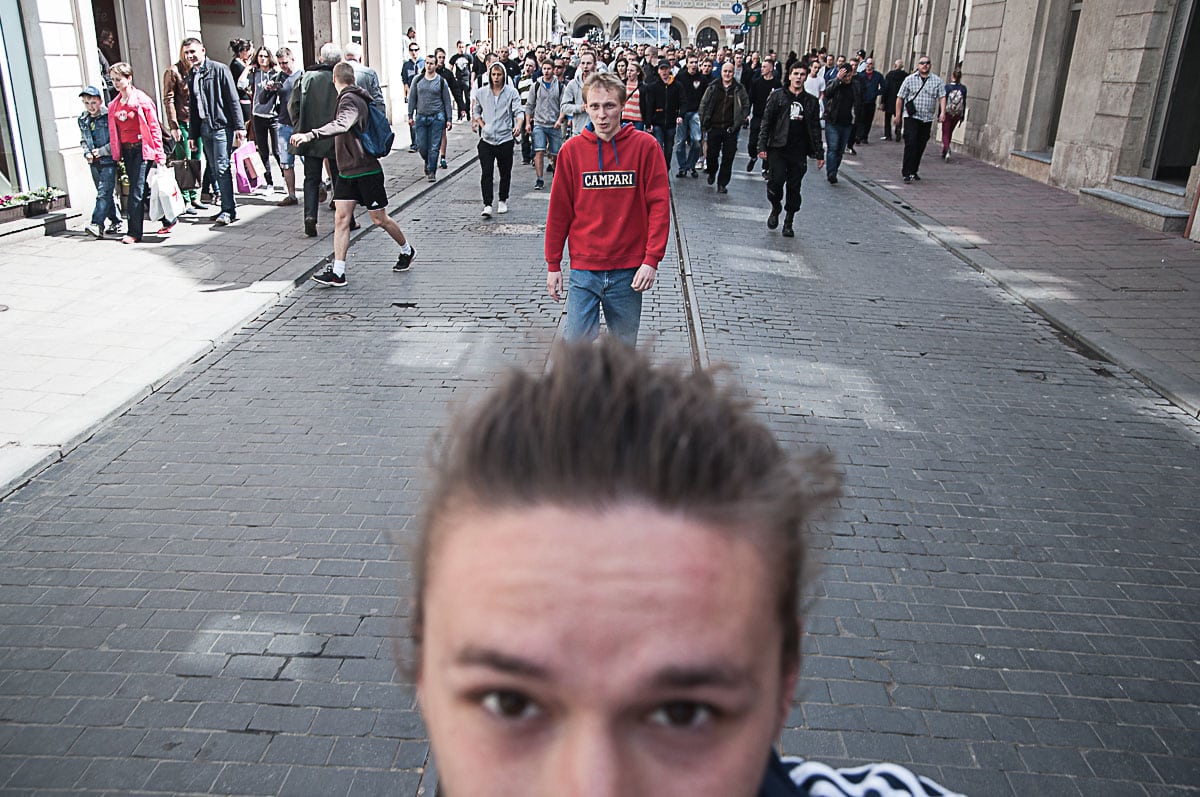 - Nie było ich pod Krzyżem Katyńskim, znaleźli się na Rynku. Piewszy dostrzeżony narodowiec, no może drugi. fot. jakub włodek