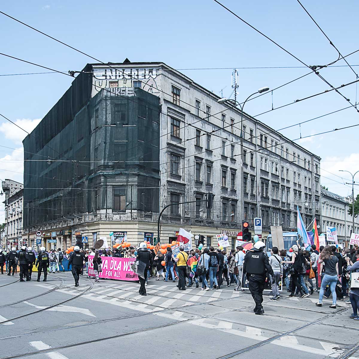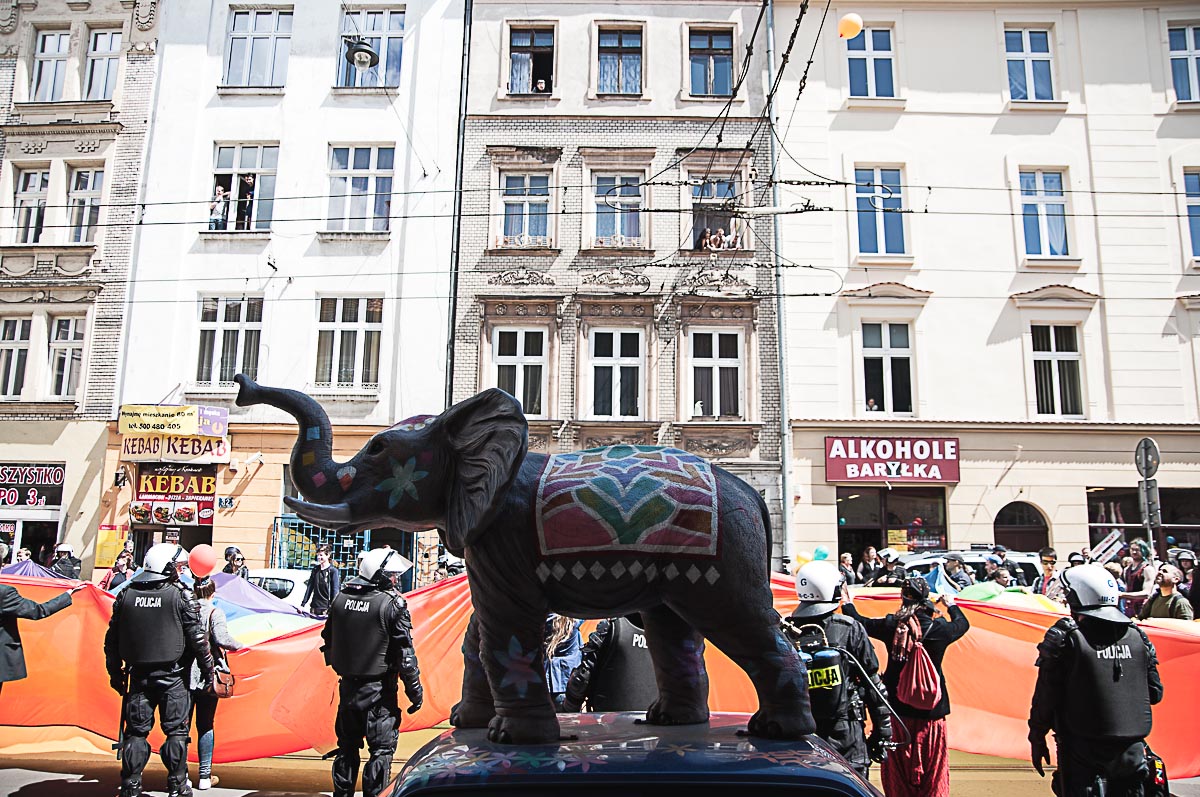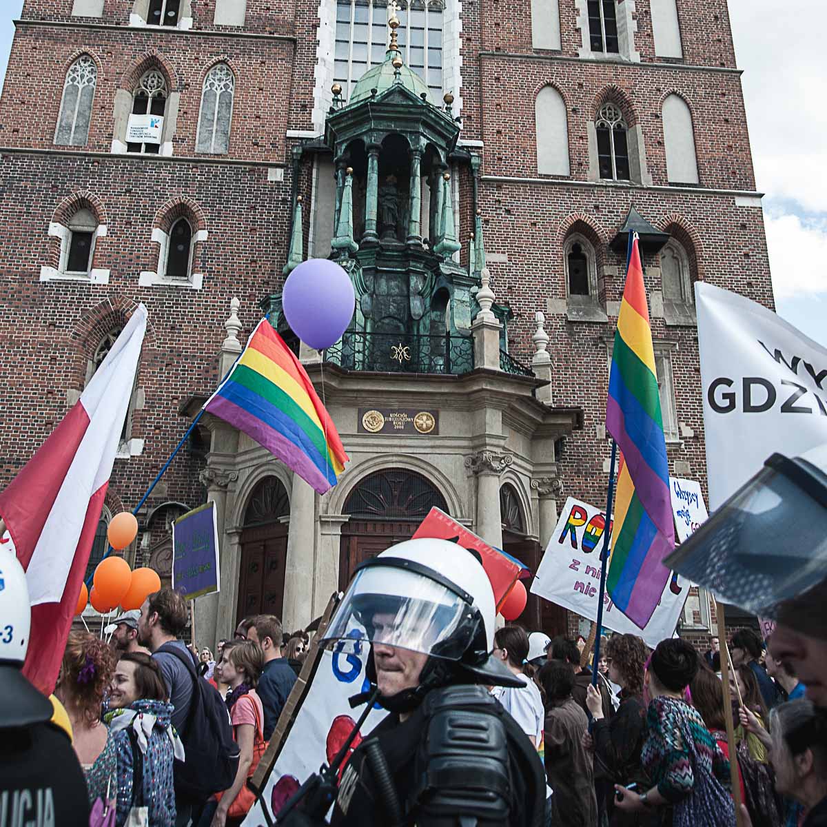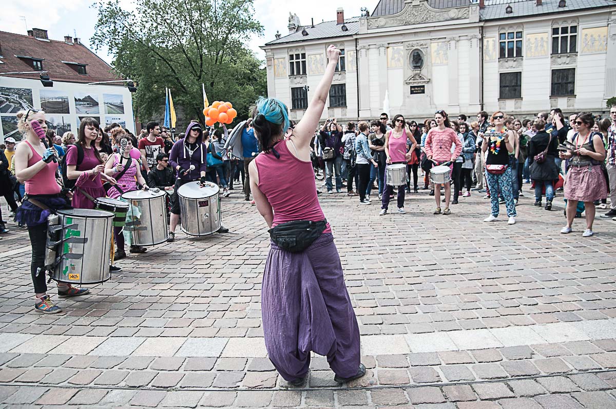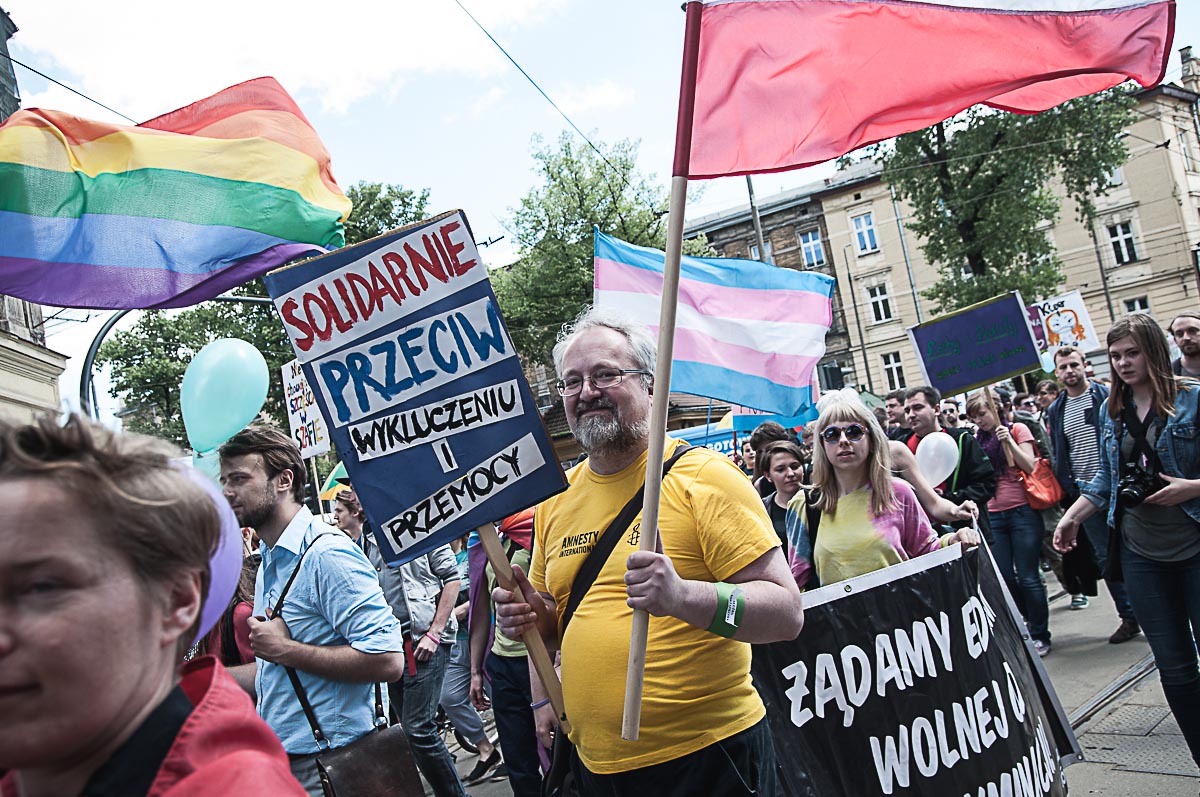Każdy ma swój Gender! Taki transparent wypatrzyłem w tłumie ludzi, którzy wzięli udział w tegorocznym Marszu Równości. To już dziesiąty taki marsz w Krakowie. Z tęczową “sektorówką” w rytmie bębnów i gwizdków, wznosząc okrzyki “dziewczyna! dziewczyna – szczęśliwa rodzina” , kilkaset osób przemaszerowało z placu Wolnica na plac Szczepański, żeby zamanifestować swoją tolerancyjność i solidarność z osobami LGBT . Było kolorowo, wesoło, i pozytywnie, a po drodze była… policja, policja, policja, narodowcy, policja, narodowcy i znowu policja.