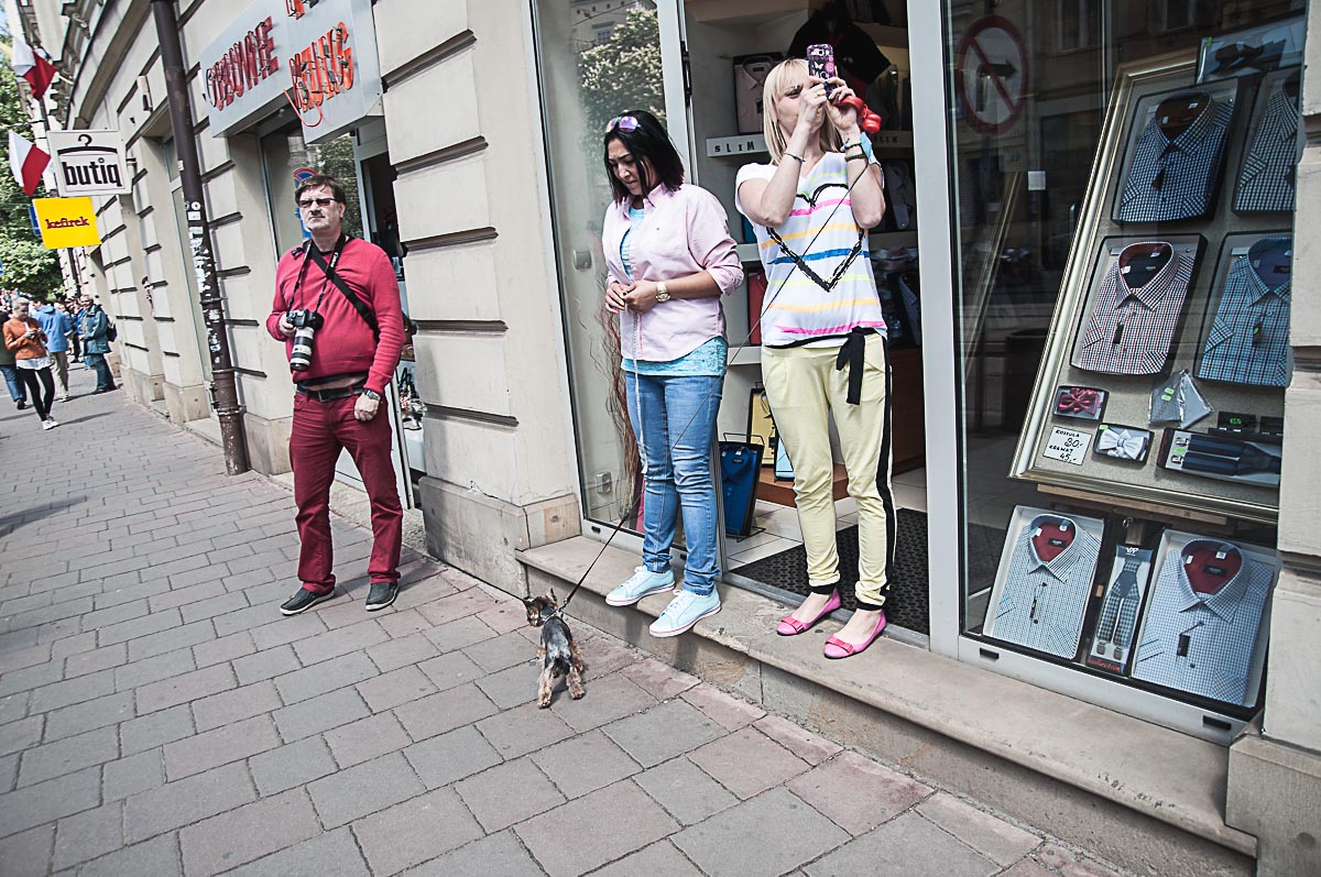 - Szewska godzina 13:00 – selfi a’la poseł Kurski. W tle maszerują narodowcy i śpiewają bycze pieśni, trzeba przyznać zmobilizowali się na ten dzień. fot. jakub włodek