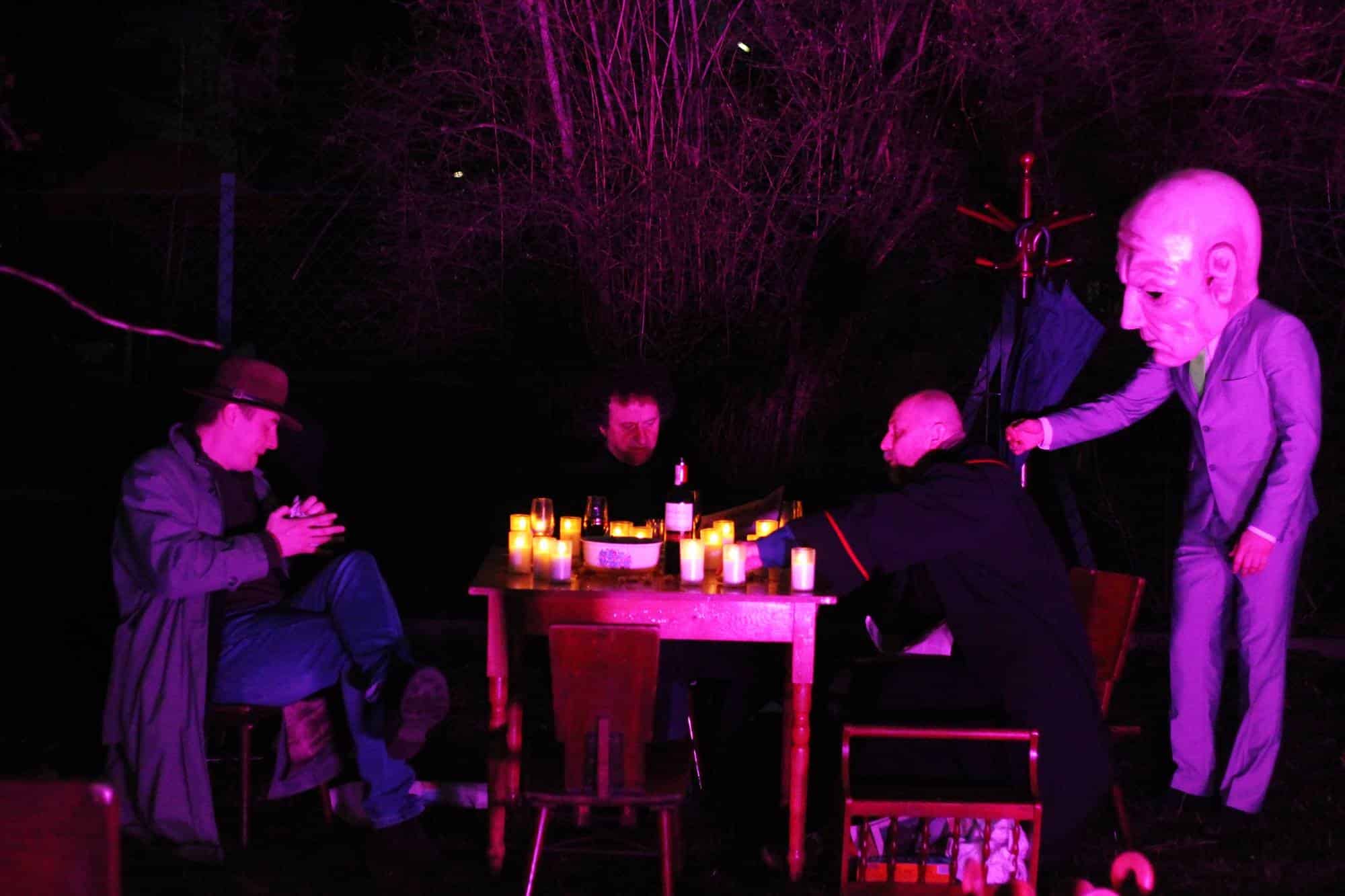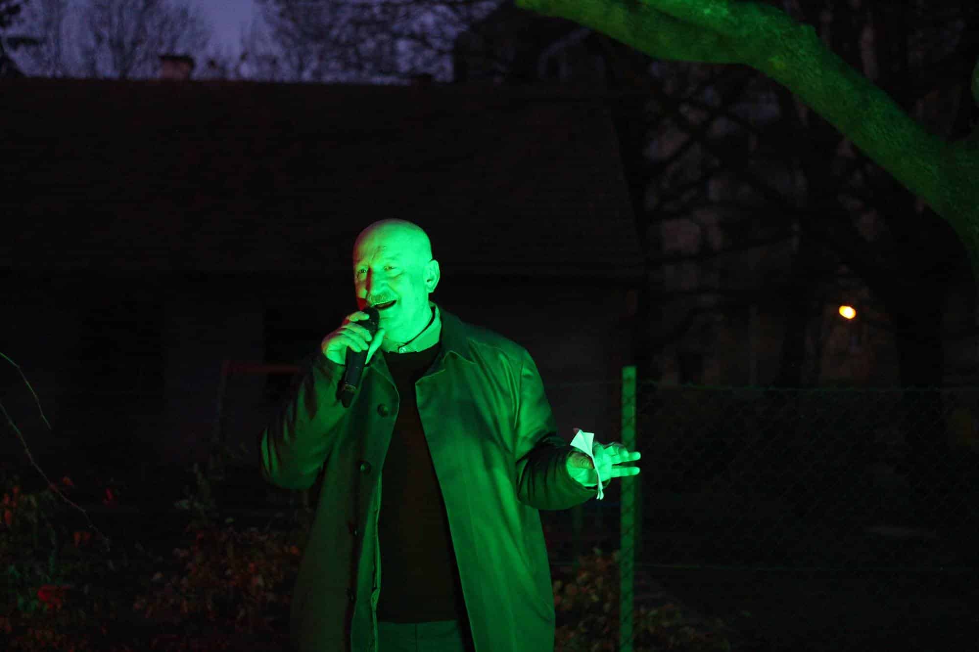Dyrektor Jerzy Zoń na wstępie zaprosił widzów do picia herbaty. Mamy dwa rodzaje herbaty: normalną, lekko wzmocnioną, i bardzo wzmocnioną. Zapraszamy na herbatę albo dwie. A sąsiadów z bloku naprzeciwko nawet na trzy. Sąsiedzi oglądali przedstawienie – niektórzy wyszli na zewnątrz, aby z bliska przyjrzeć się popisom aktorów i kaskaderów, część wychylała głowy przez okna. Było na tyle głośno, że okoliczni mieszkańcy nie mogli przejść obok show obojętnie.