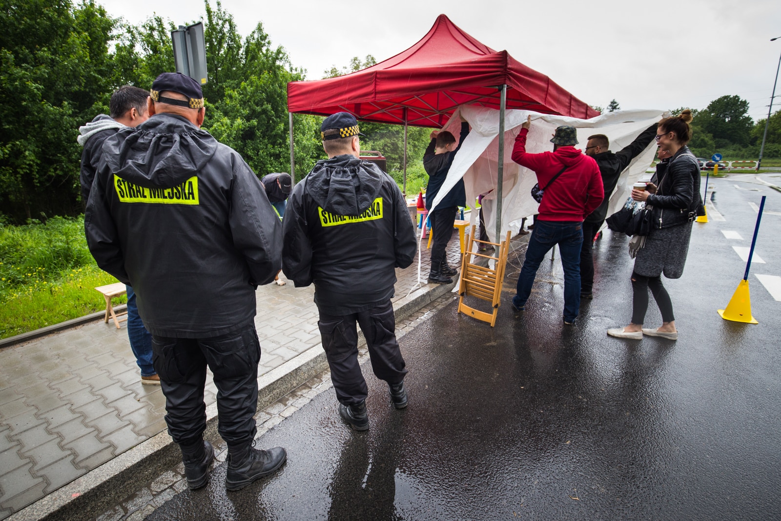 oj nie wiem czy to bezpieczne urządzać takie rzeczy na ulicy gdzie później jeżdżą samochody…