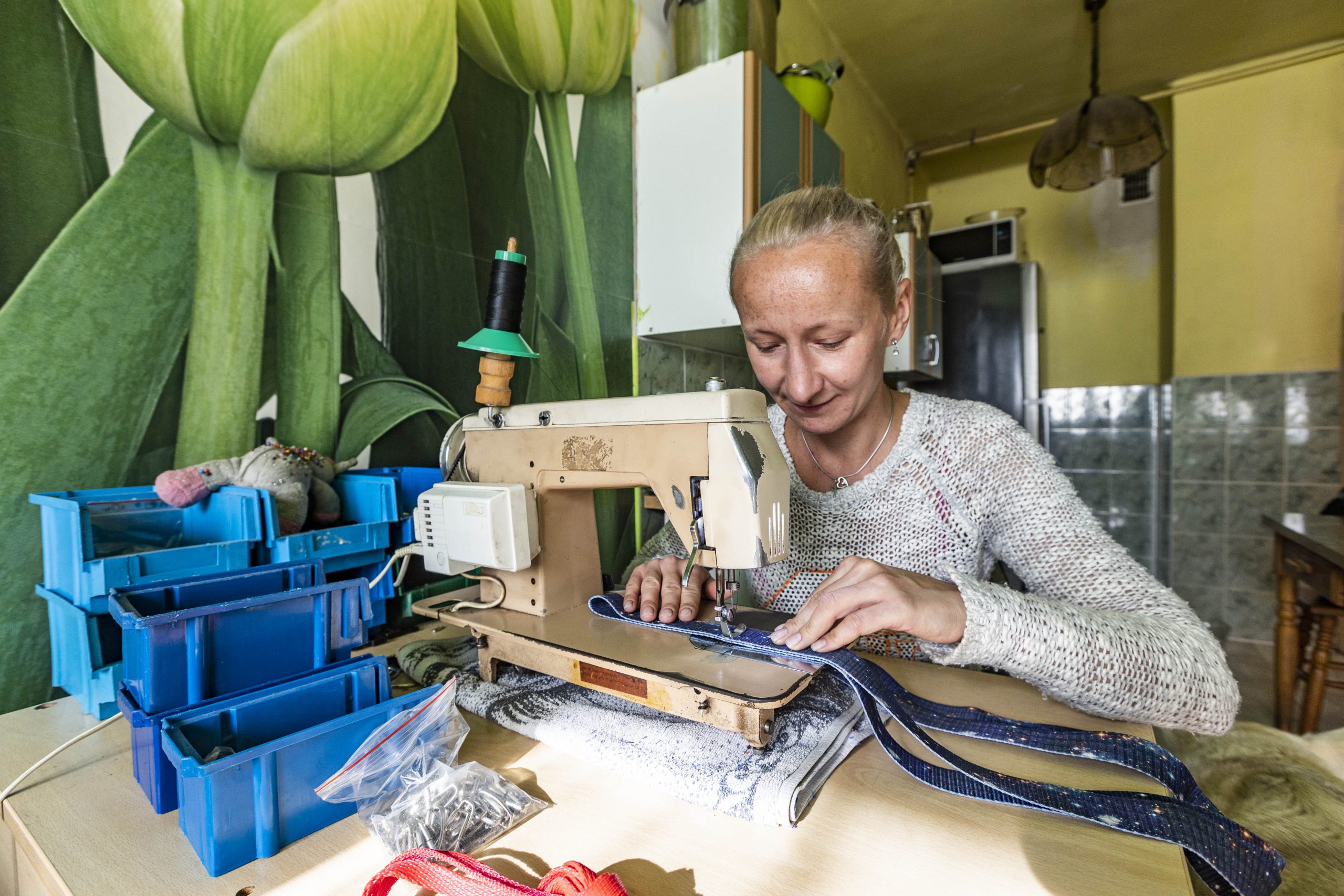 Marzena to miłośniczka psów rasy husky oraz wielbicielka rękodzieła. Swoje produkty tworzy w wydzielonym do tego celu niewielkim kawałku mieszkania z dostępem do okna, maszyną, prasą i stertą pudeł, które mieszczą kolorowe taśmy, ozdoby i elementy niezbędne do tworzenia nie tylko psich akcesoriów. Szyła szelki dla wietnamskiej świnki, obróżkę dla ptaków, a nawet szelki dla papugi.