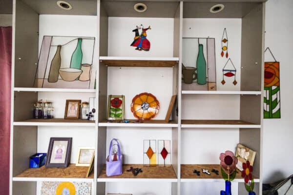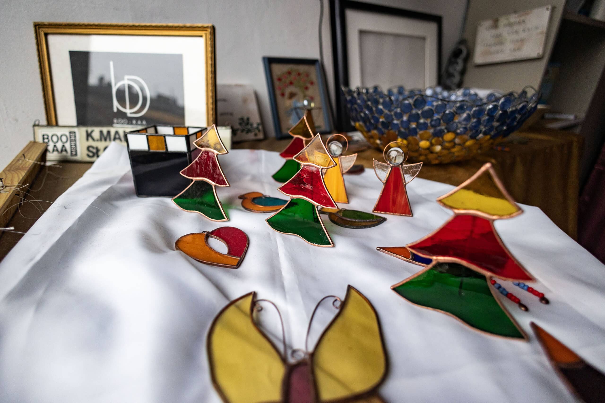 Pan Krzysztof Małota, rzemieślnik z ponad 25-letnim doświadczeniem, robi witraże techniką Tiffany’ego — od misternych aniołków po większe dekoracje i lampy. Znajdziecie go w kamienicy przy al. Juliusza Słowackiego 38. Pracownia to Boo-Kaa Design.