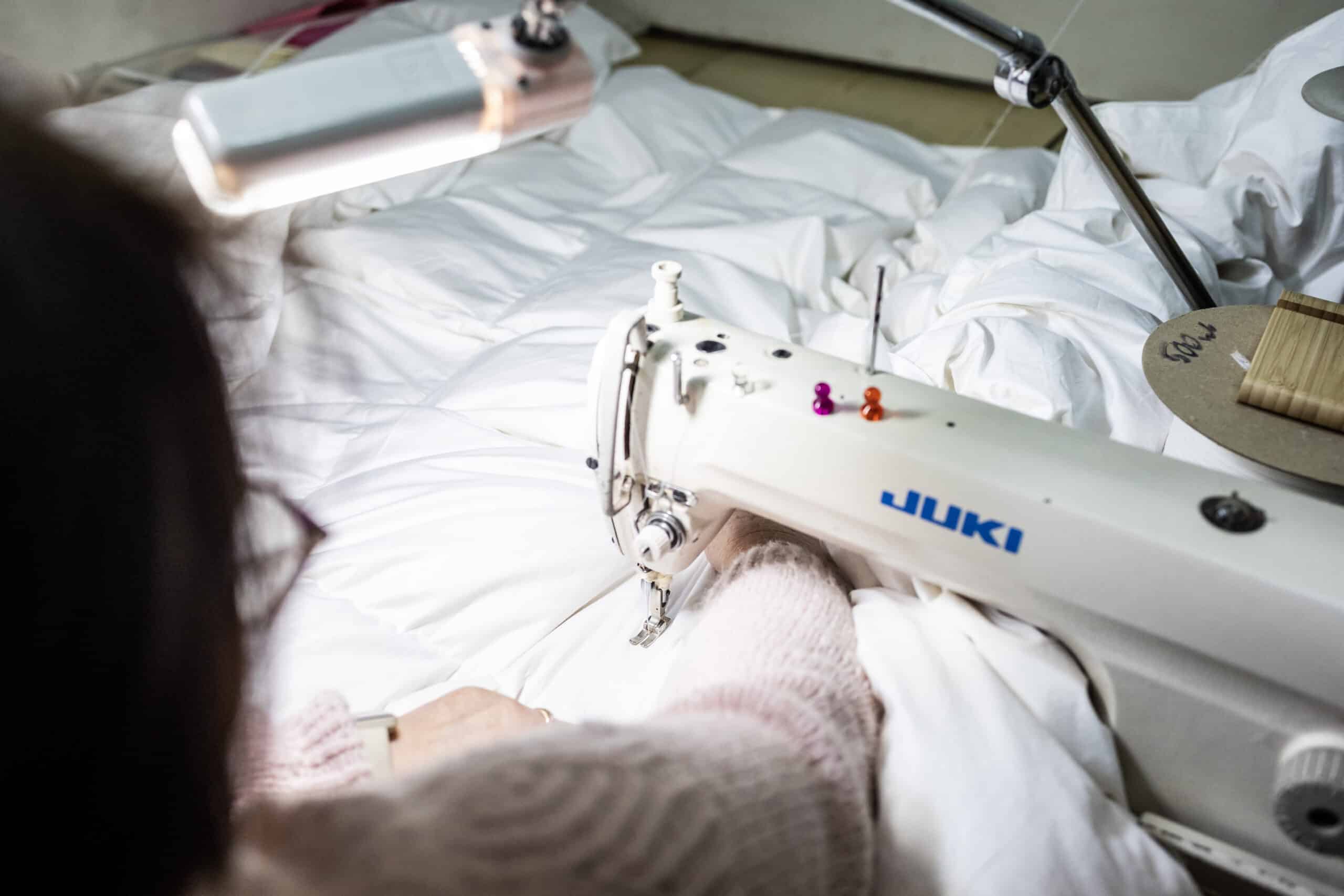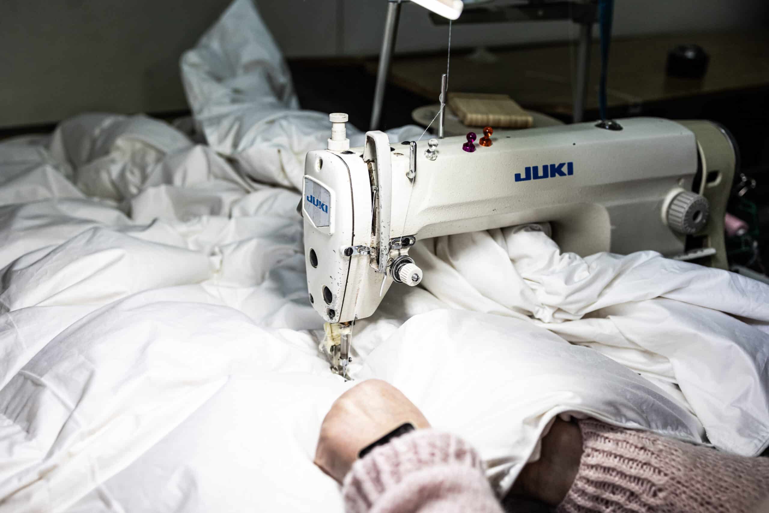 Stawiam na polskie tkaniny. Mam sprawdzonych dostawców z Małopolski i Żagania, którzy dostarczają mi gęsto tkane bawełny, aby puch nie przedostawał się na zewnątrz. Nie kupuję chińskich gotowców – jakość jest dla mnie najważniejsza.