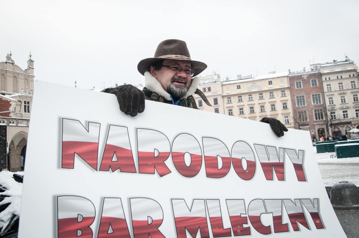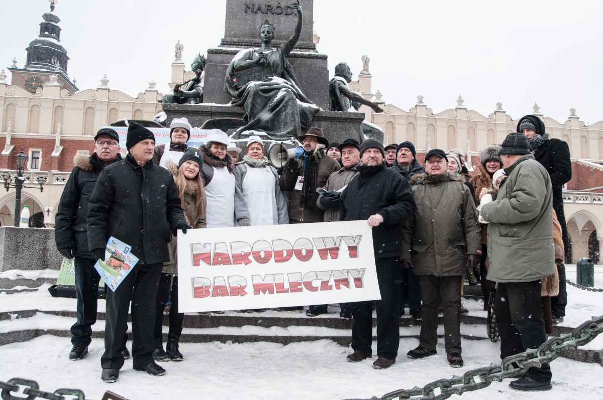 W samo południe na Rynku Głównym w Krakowie ukonstytuował się Narodowy Bar Mleczny. Celem tego ruchu społecznego jest obrona tradycyjnej, zdrowej polskiej kuchni. A bastionem polskiej kuchni są oczywiście bary mleczne. To tam zamiast kosmopolitycznych kebabów, hamburgerów i hot-dogów można zjeść naturalnie polskie łazanki, pierogi i kaszę gryczaną z sosem miejskim.