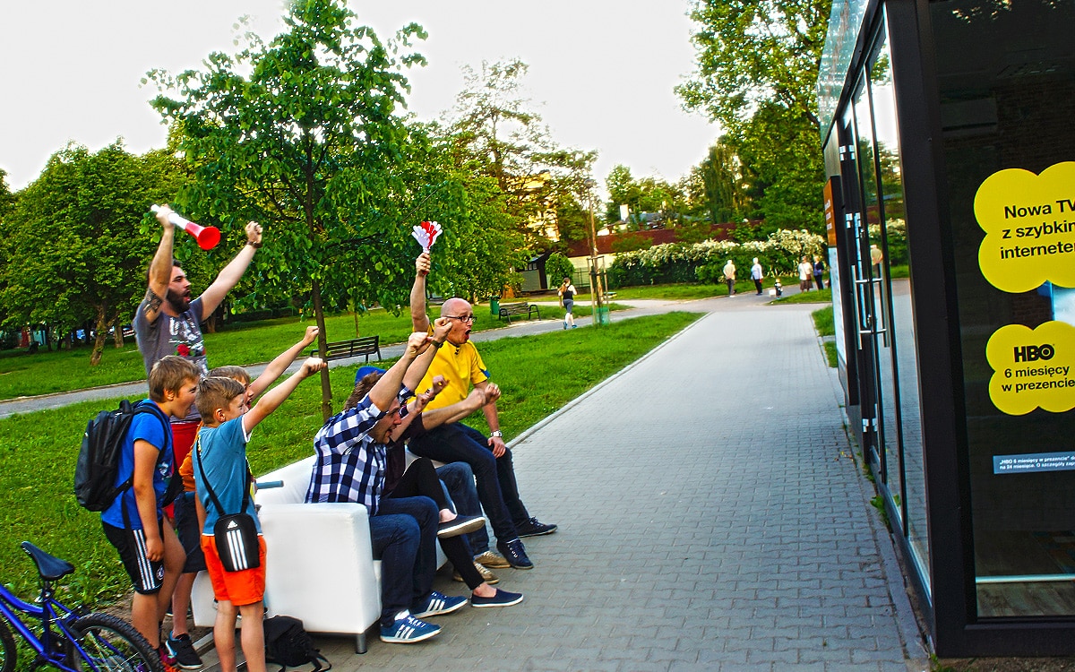 Piłkarski weekend pełen emocji wydał nam się idealnym momentem na rodzinny piknik pełen kibicowania. Wystarczyła jedna sofa, aby ze zwykłego osiedla Widok stał się wspaniałym miejscem spotkań. Przepraszamy, że nie dostrzegliśmy tego wcześniej. Strefa kibica dla mieszkańców to prawdziwy strzał w dziesiątkę. Nowa strefa kibica może przejąć funkcję pobliskiego amfiteatru, który w ramach Budżetu Obywatelskiego powstaje od trzech lat. Wobec tego nowa miejscówka mogłaby pozostać do ukończenia tej inwestycji, czyli na zawsze. Jako pierwsi beneficjenci tego pomysłu chcielibyśmy w ramach konsultacji społecznych, zgłosić kilka propozycji w związku ze zbliżającymi się Mistrzostwami Europy: