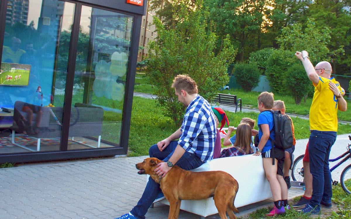 Wielka radość na osiedlu Widok. Wykorzystując reklamowy klocek, który firma Orange postawiła na trawniku, zorganizowaliśmy pilotażową strefę kibica dla mieszkańców. Zainteresowanie było ogromne i mamy nadzieje, że tego typu wydarzenia staną się w Bronowicach normą. Tym bardziej, że zbliża się EURO z udziałem naszych biało-czerwonych Orłów.