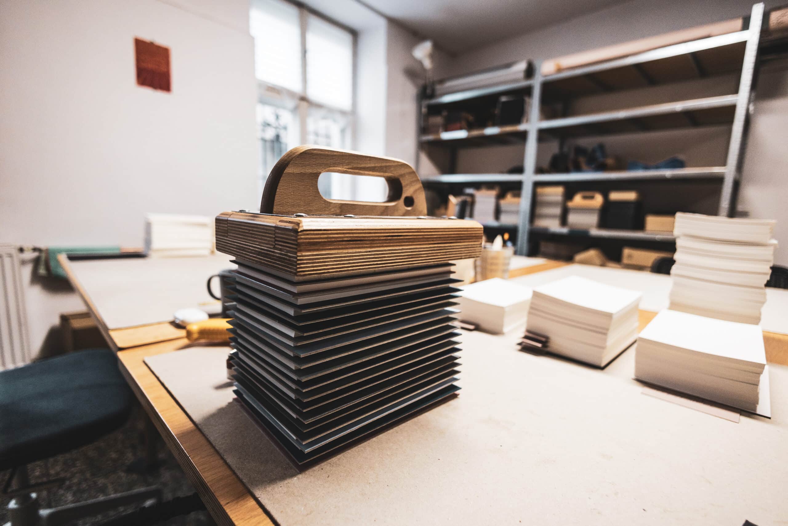 Od początku chcieliśmy, by Papierniczeni byli czymś więcej niż tylko miejscem sprzedaży, oderwanym od procesu tworzenia. To przestrzeń, w której ręczna praca odgrywa kluczową rolę. Ze wsparciem maszyn i drobnych narzędzi dopieszczamy każdy notatnik i czujemy, że znamy go od podszewki. Mamy wpływ na produkt od pierwszej koncepcji, przez etap produkcji, aż po moment, w którym trafia on w ręce klientów – taki proces daje nam dużo satysfakcji.