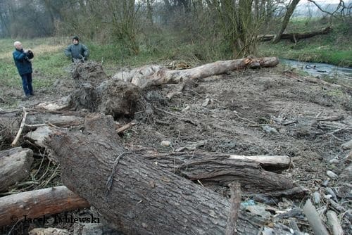 W dniu dzisiejszym, tj. 3.12.2014, członkowie Małopolskiego Towarzystwa Ornitologicznego oraz Towarzystwa na Rzecz Ochrony Przyrody na miejscu terenu prawnie chronionego, użytku ekologicznego “Dolina Prądnika”, zastali istne “pobojowisko” oraz pracowników Małopolskiego Zarządu Melioracji i Urządzeń Wodnych w Krakowie.Na całym odcinku użytku wprowadzono ciężkie koparki gąsienicowe, wycięto lub wyrwano z korzeniami (za pomocą koparki) ponad dwadzieścia drzew, w tym wiele pomnikowych, ponad 100-letnich, wybierano żwir z koryta, zniszczono brzegi, zakrzewienia, żeremie bobrowe(!), naruszono trwale strukturę brzegu, dokonując min. kuriozalnego przekopu na długości paru metrów, tworząc wysepkę o pow. kilkunastu metrów kwadratowych. Podczas interwencji Policji, pracujący nie okazali żadnych dokumentów zezwalających na taki zakres prac. Prac Policja nie przerwała…