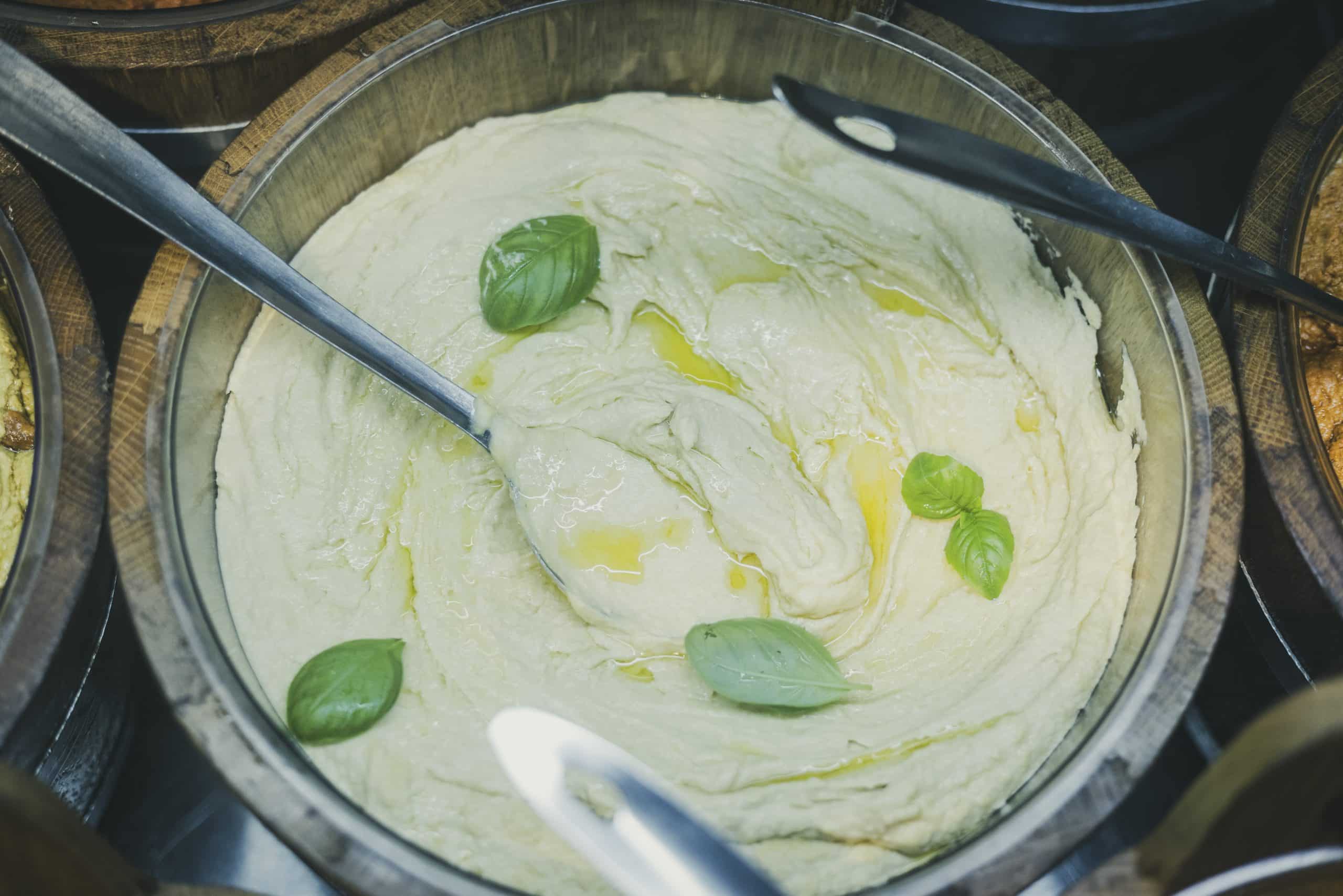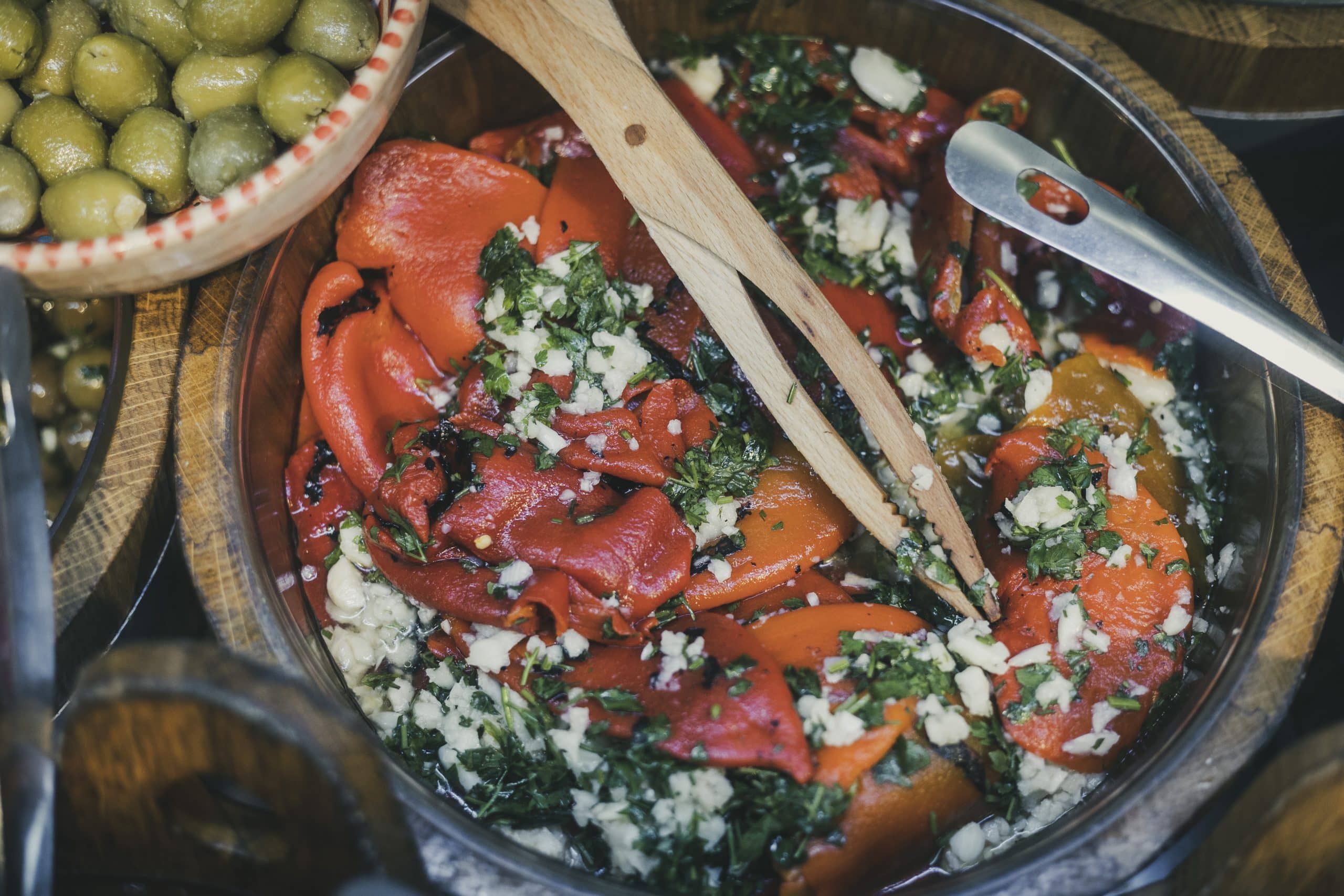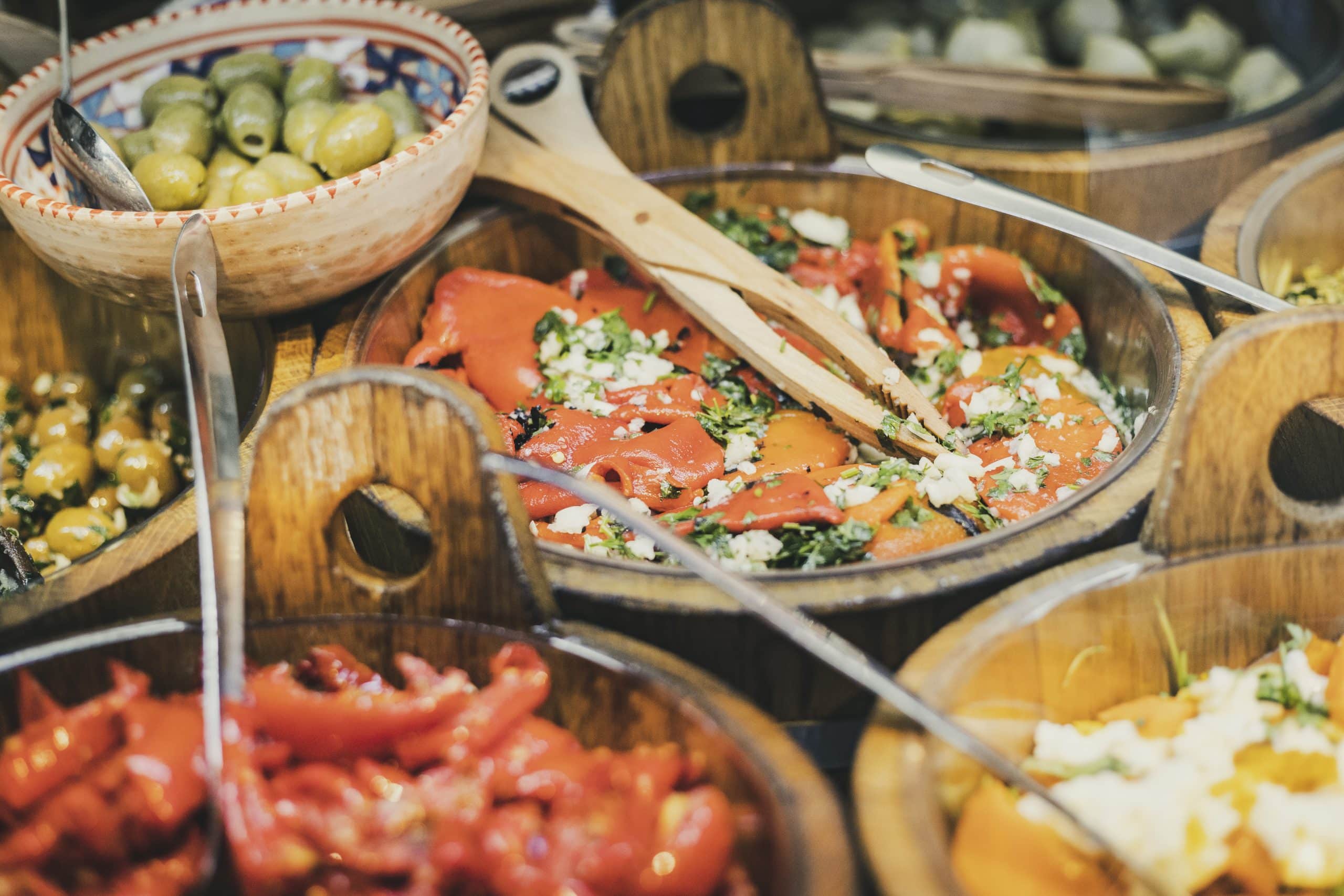 Monika: Oliwki w formie wszelakiej albo w ziołach, albo nadziewane, albo po prostu same. Hummus w wielu smakach, pesto – od najbardziej klasycznego pesto bazyliowego z prostym składem, po sezonowe wersje, np. dostępne teraz pesto dyniowe. Robimy też różne dipy na bazie fety lub innych serów kozich i owczych, wegańskie i wegetariańskie sałatki, tapenady i harissy. Mamy też przekąski, jak pomidory suszone, karczochy czy dolmadesy. Ostatnio sprowadziliśmy też z Modeny pyszny 12-letni ocet balsamiczny. Jest w czym wybierać.