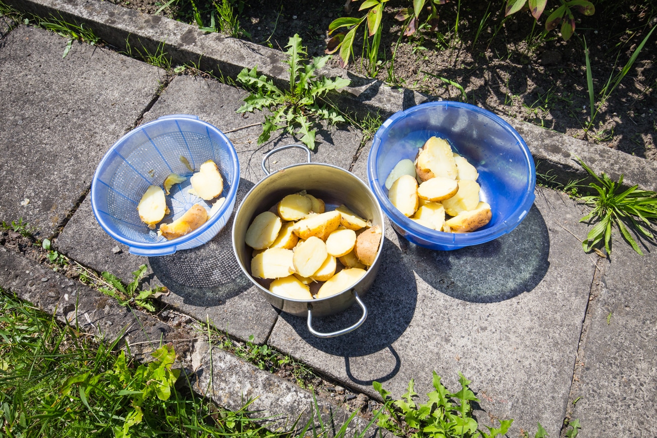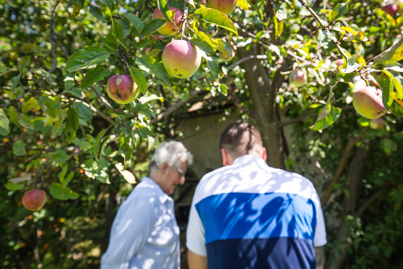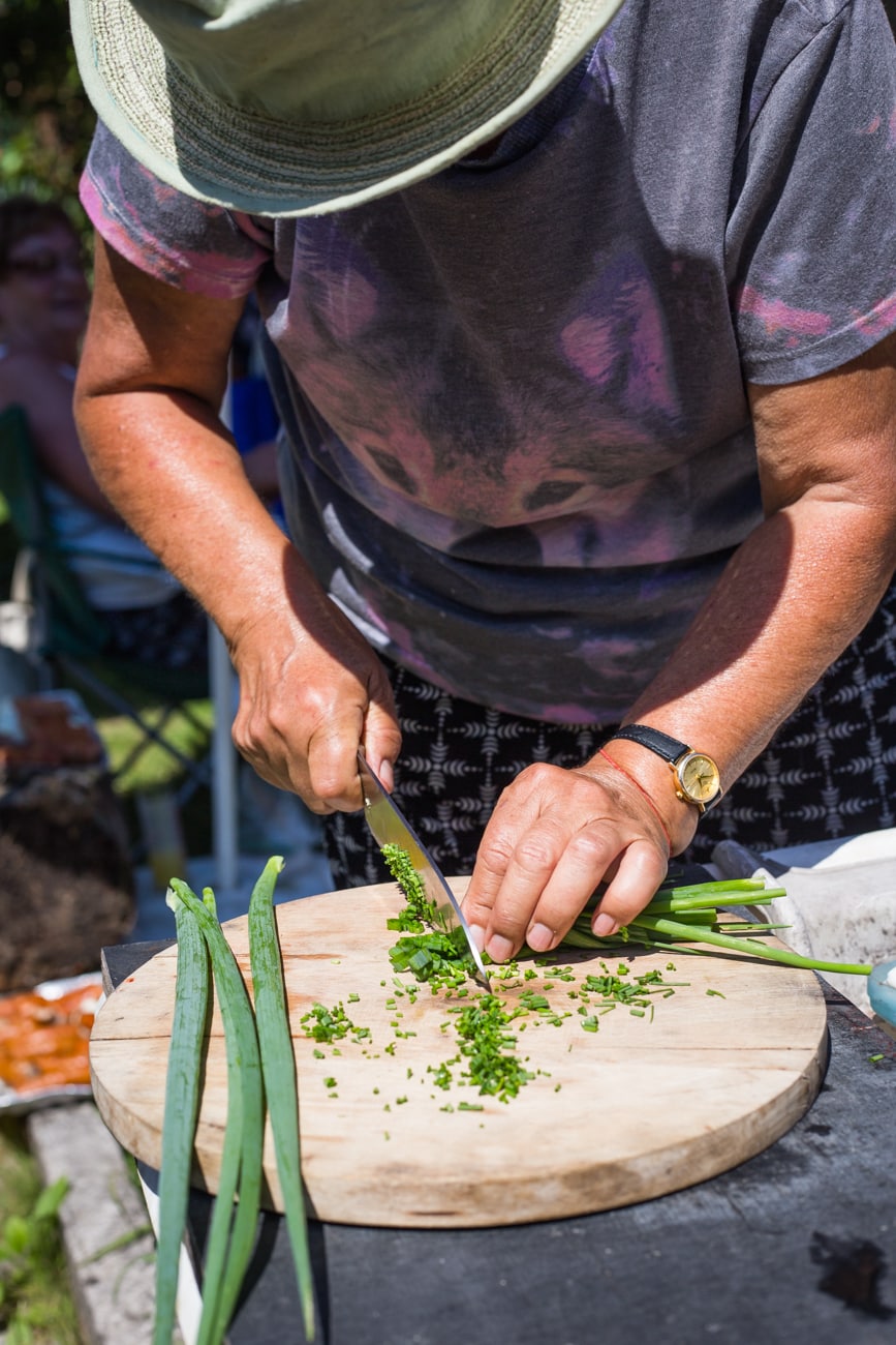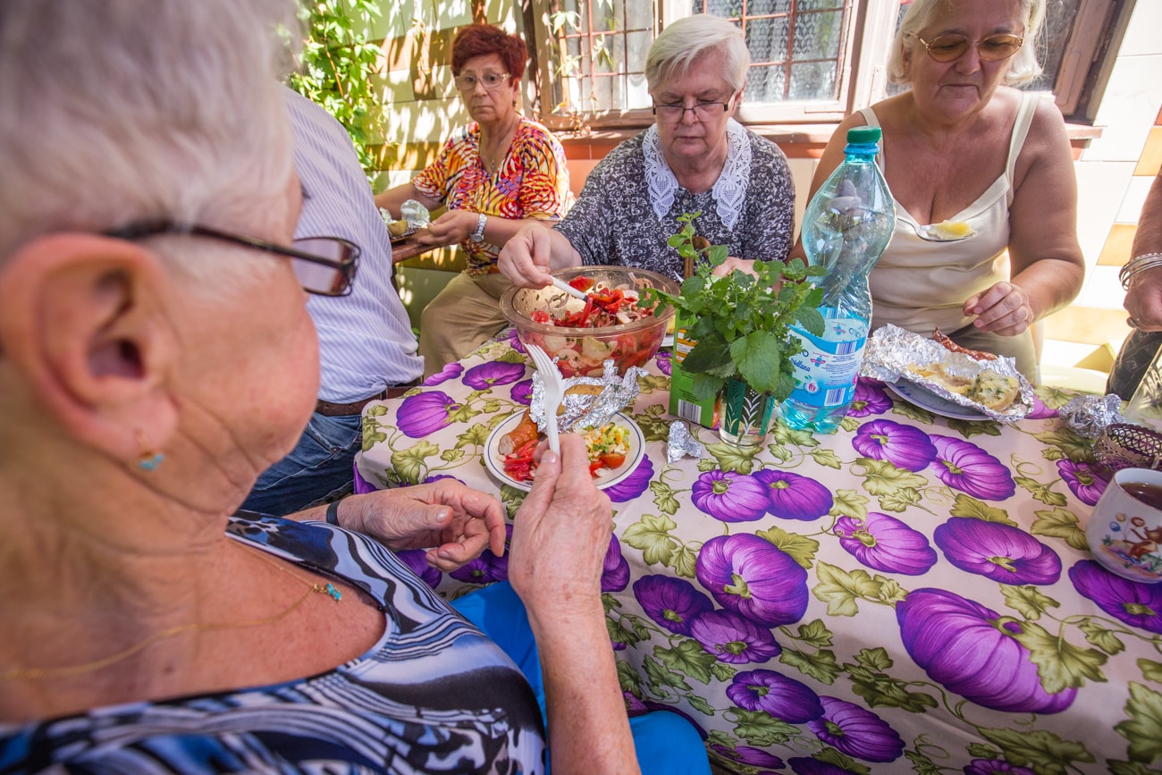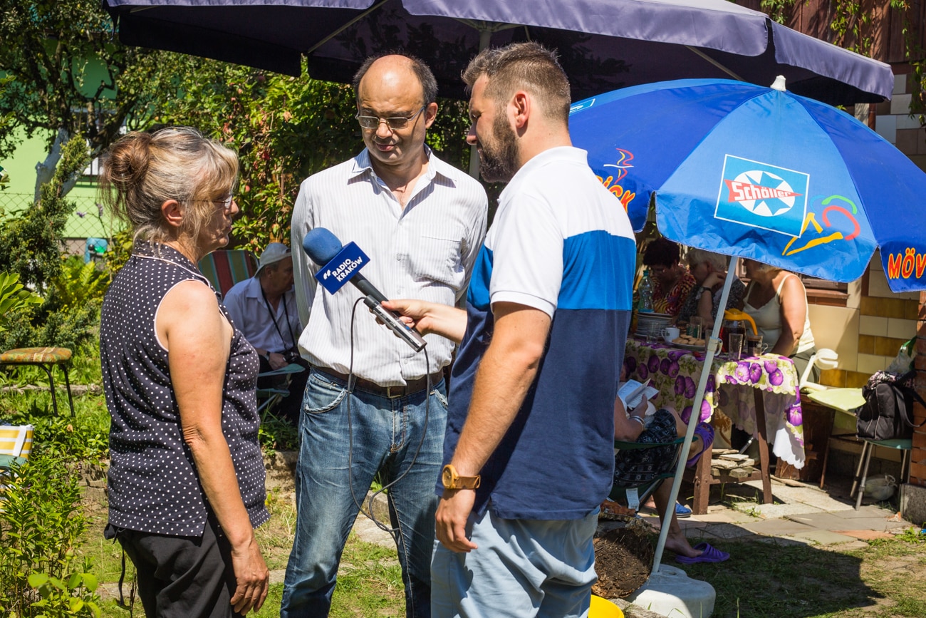 Fotografuje od 45 lat. – Wszyscy się śmieją, że ja robię zdjęcia wszystkiemu co się rusza i co się nie rusza – przyznaje z dumą. Trzyma aparat w lewej ręce, prawej nie ma wcale, sparaliżowana. – Muszę sobie robić specjalny uchwyt, żeby zdjęcia były nieporuszone – przyznaje Andrzej, który radzi sobie z tym problemem dość dobrze. – Muszę! Choć jutro znów mam operację. Będę usypiany po raz piąty w ciągu pół roku – przyznaje z trudno ukrywaną obawą. Jednak widzę, że robienie zdjęć i to, że ktoś na nie czeka, daje ogromną siłę do walki o zdrowie. I nie sądzę, żeby jej zabrakło, bo Andrzej – mimo częstych wizyt w szpitalach – nie wygląda na specjalnie schorowanego. Stefania włada nie aparatem, a sekatorem. – Też mam działkę i chciałabym, żeby tu było tak ładnie, jak tam – podkreśla, przycinając gałęzie drzewa. Specjalnie na naszą wizytę, “odpicowała” frontową część ogródka, żeby wstydu nie było. Myślę, że nie byłoby go nawet bez odpicowania, ale jako gość, czułem się zaszczycony. Anna to osoba, która prawdopodobnie mogłaby mnie zawstydzić najbardziej ze wszystkich. Ja, jako manualne dno, z uznaniem oglądałem jej robótki ręczne. Z szeleszczącej siatki, z ogromnym pietyzmem, wyciągnęła zrobione przez siebie korale. Piękne. – Jeszcze nie skończone! – zastrzegała prezentując swoje dzieło. Dzieła sztuki robi także Grażyna, a dokładniej haftowane obrazy. – “Święte”, jak ja to mówię. Np. Papieża Franciszka. Do tego różne widoki, kościółki… – jak dodaje, ma już na swoim koncie kilka wystaw.
