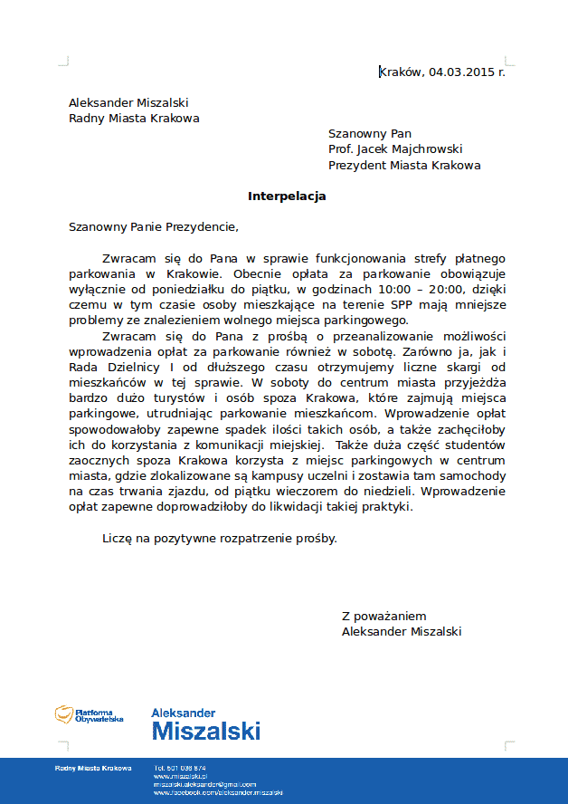 Można oczywiście powiedzieć, że na bezrybiu i rak ryba, ale zdaje się, że radny Miszalski między rybami mógłby pływać jeszcze lepiej. Można również dodać, że bycie najjaśniejszą postacią w “Mordorze”, nie oznacza też bycia “Mesjaszem”. Jednak pracowitości i wyobraźni nie sposób mu odmówić. Tylko na dzisiejszej sesji Rady Miasta zaplanował złożenie pięciu, sensownych dodajmy, bo to nie jest oczywiste, interpelacji w sprawach parkingu pod pl. Inwalidów, wjazdów do Strefy B i stref płatnego parkowania.