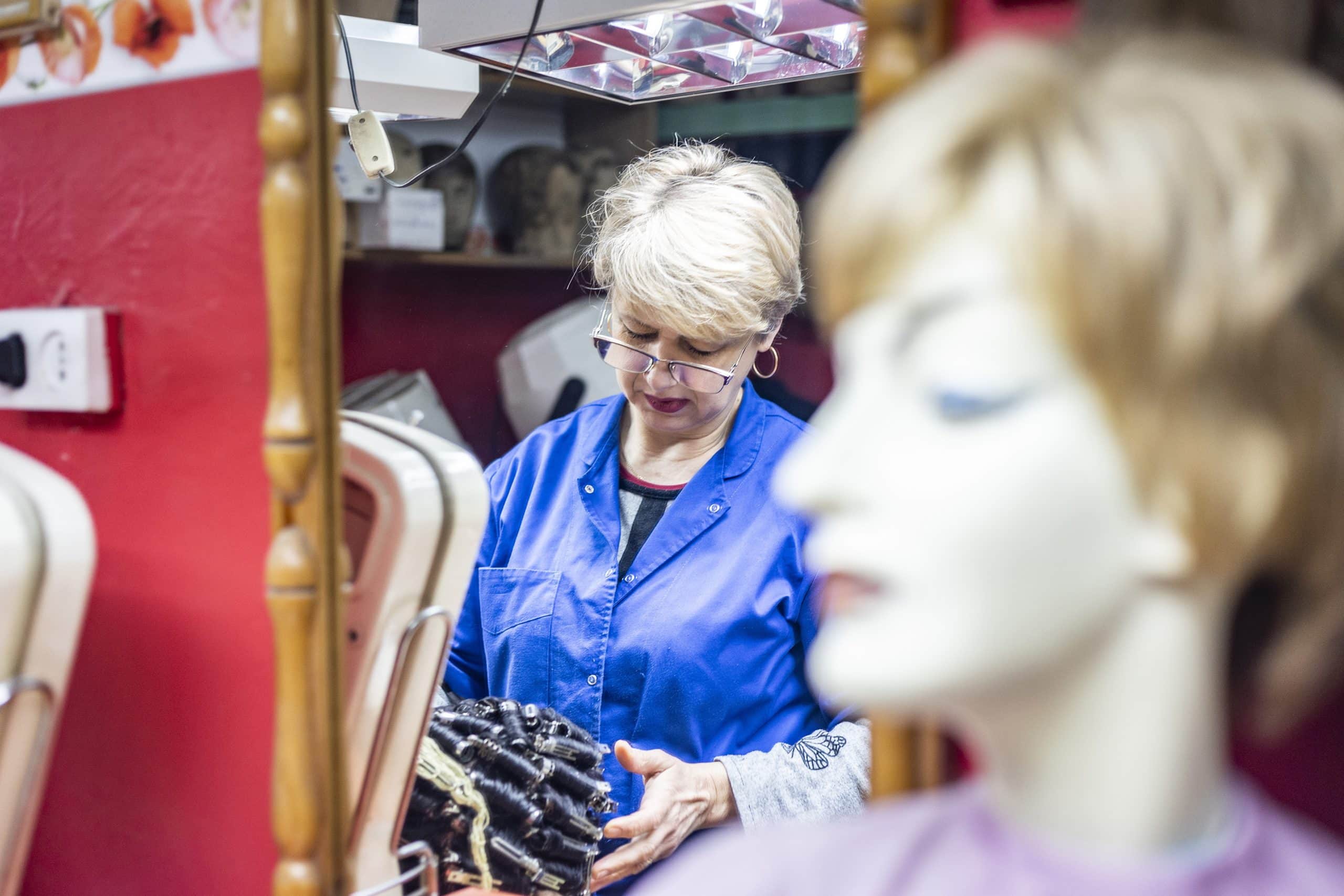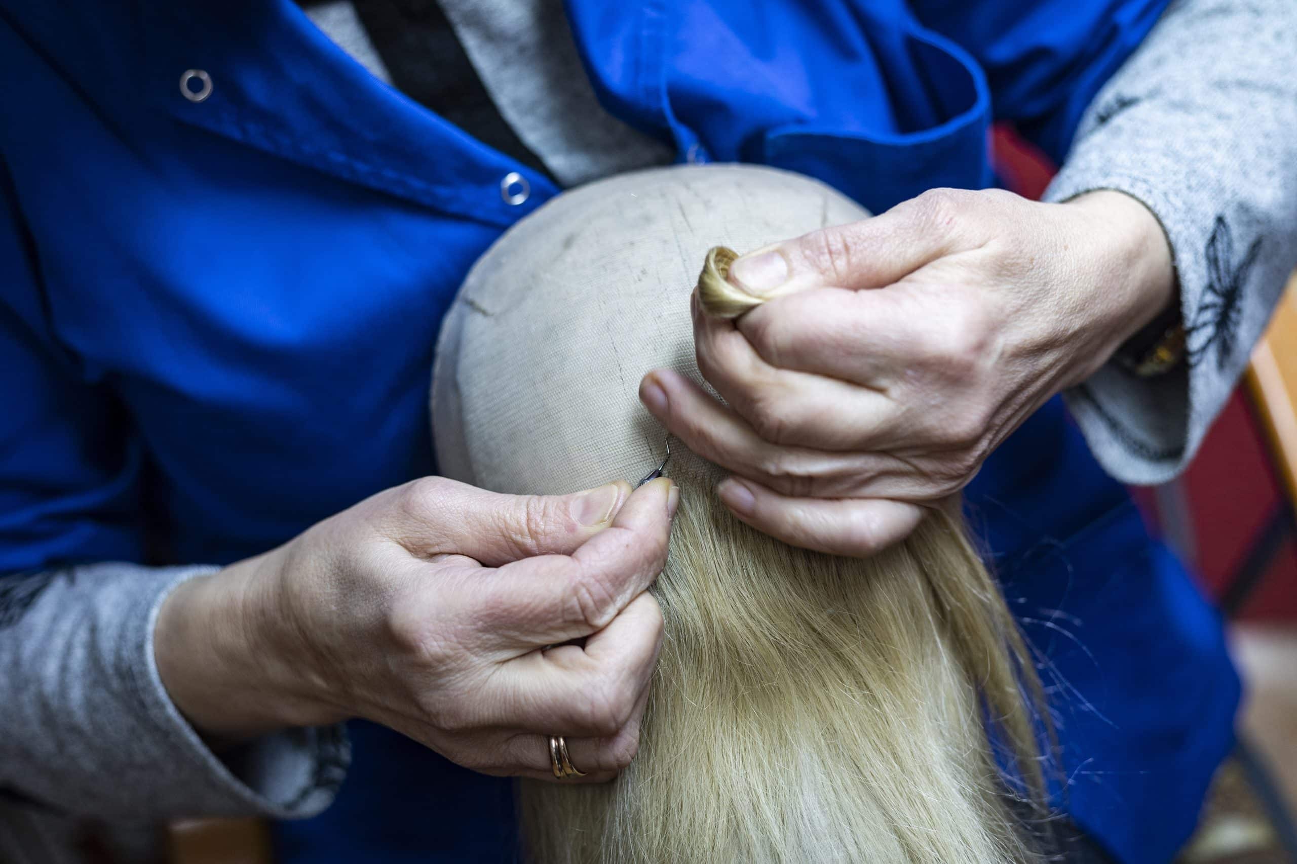 To zawód, który wymaga cierpliwości, jest bardzo pracochłonny. Szydełkiem perukarskim kosmyk włosów odpowiednim ruchem montuję w odpowiednim miejscu. Wbijam szydełko z trzema włosami w gazę, przeciągam i robię węzełek. Trzeba znać konstrukcję włosa, że ma on łuskę, trzeba wiedzieć, że nie wolno go z innym pomylić, aby peruka się nie zwijała i ładnie czesała. Uszycie konstrukcji i utkanie trwają prawie dwa tygodnie. Następnie jest ułożenie, podcięcia i powstaje fryzura. Po tym czasie przychodzi klientka na mierzenie. Najczęściej jest tak, że ją ubiera i wychodzi, ale zdarza się, że jeszcze trzeba podciąć np. grzywkę.
