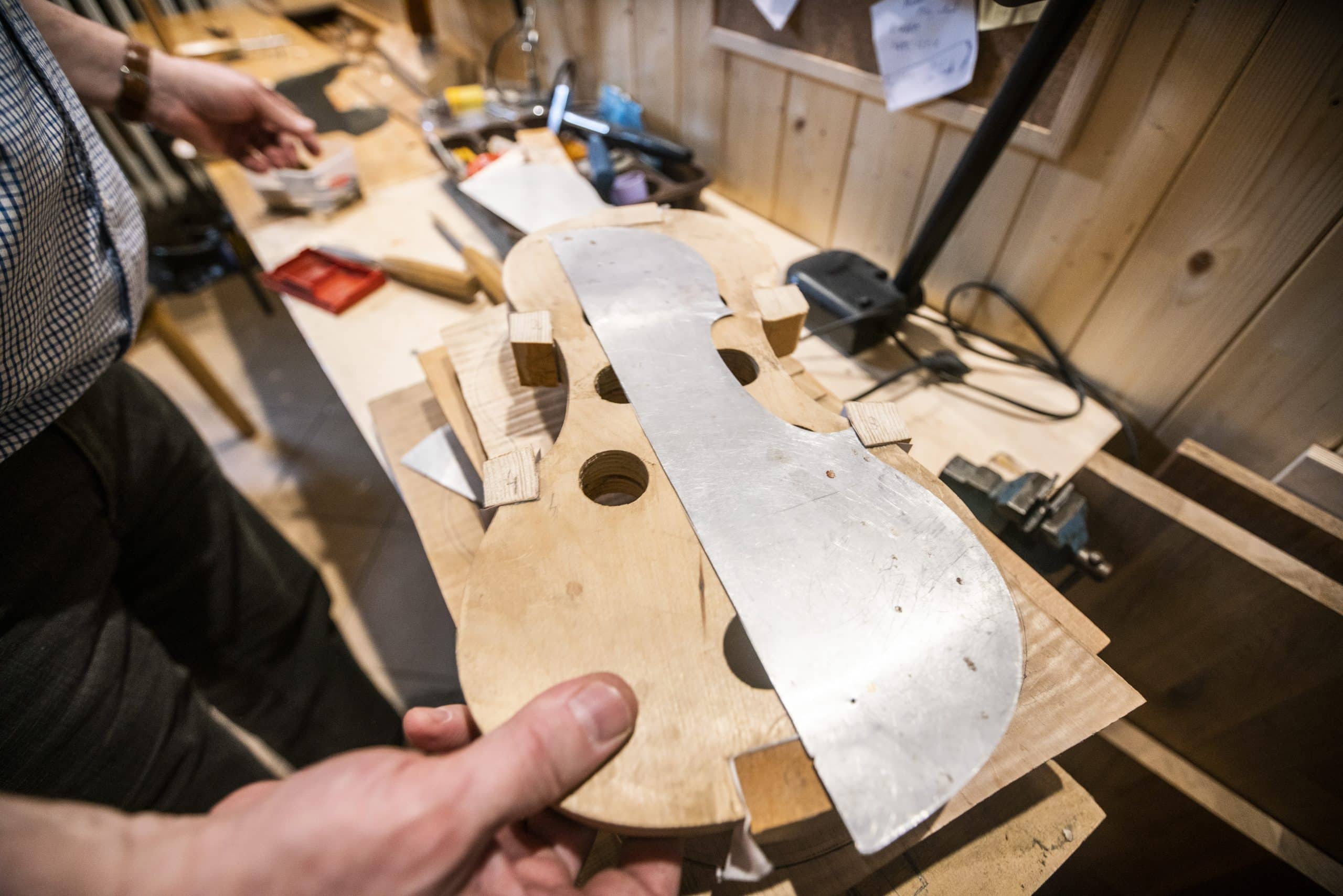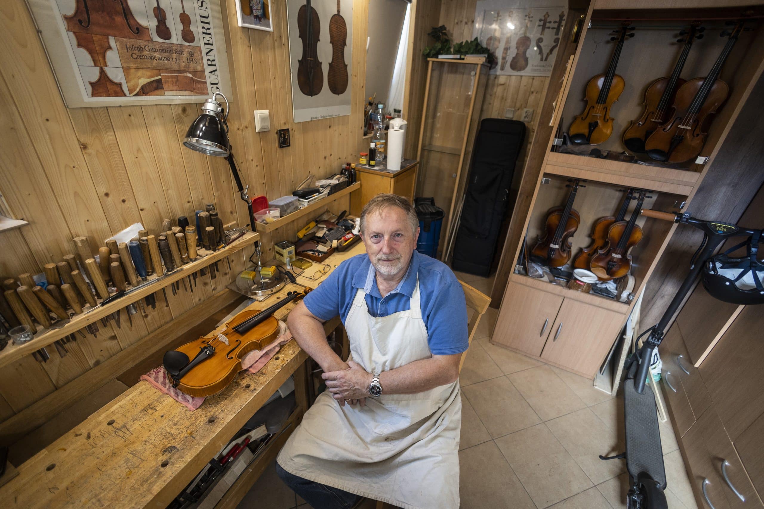 Naprawiam praktycznie wszystkie instrumenty smyczkowe prócz gitar, bo tutaj potrzebne jest inne oprzyrządowanie. Buduję również altówki, wiolonczele.