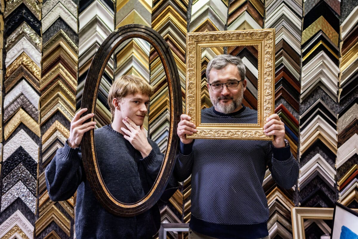 U nas… nie ma podziału. Każdy robi wszystko. Nie ma tak, że jeden tylko przyjmuje klientów, a drugi tylko tnie listwy czy składa ramy. Musimy być wszechstronni, bo bywają dni, kiedy ktoś jest sam na placu boju.