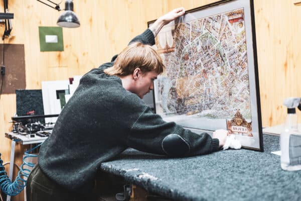 Tutaj mamy handlarzy antykami, domy aukcyjne, muzea – Muzeum Czartoryskich, Muzeum Fotografii – uczelnie, naprzeciwko Wydział Prawa UJ. Oprócz klientów indywidualnych przychodzą do nas instytucje miejskie, ale też duże, prestiżowe podmioty. Współpracujemy z Muzeum Narodowym, Polską Akademią Umiejętności, Międzynarodowym Centrum Kultury, a nawet realizowaliśmy oprawy dla Muzeum Auschwitz. Wracają do nas, bo cenią obsługę, cenę, czas realizacji i… to, że jesteśmy w zasięgu krótkiego spaceru po Rynku.