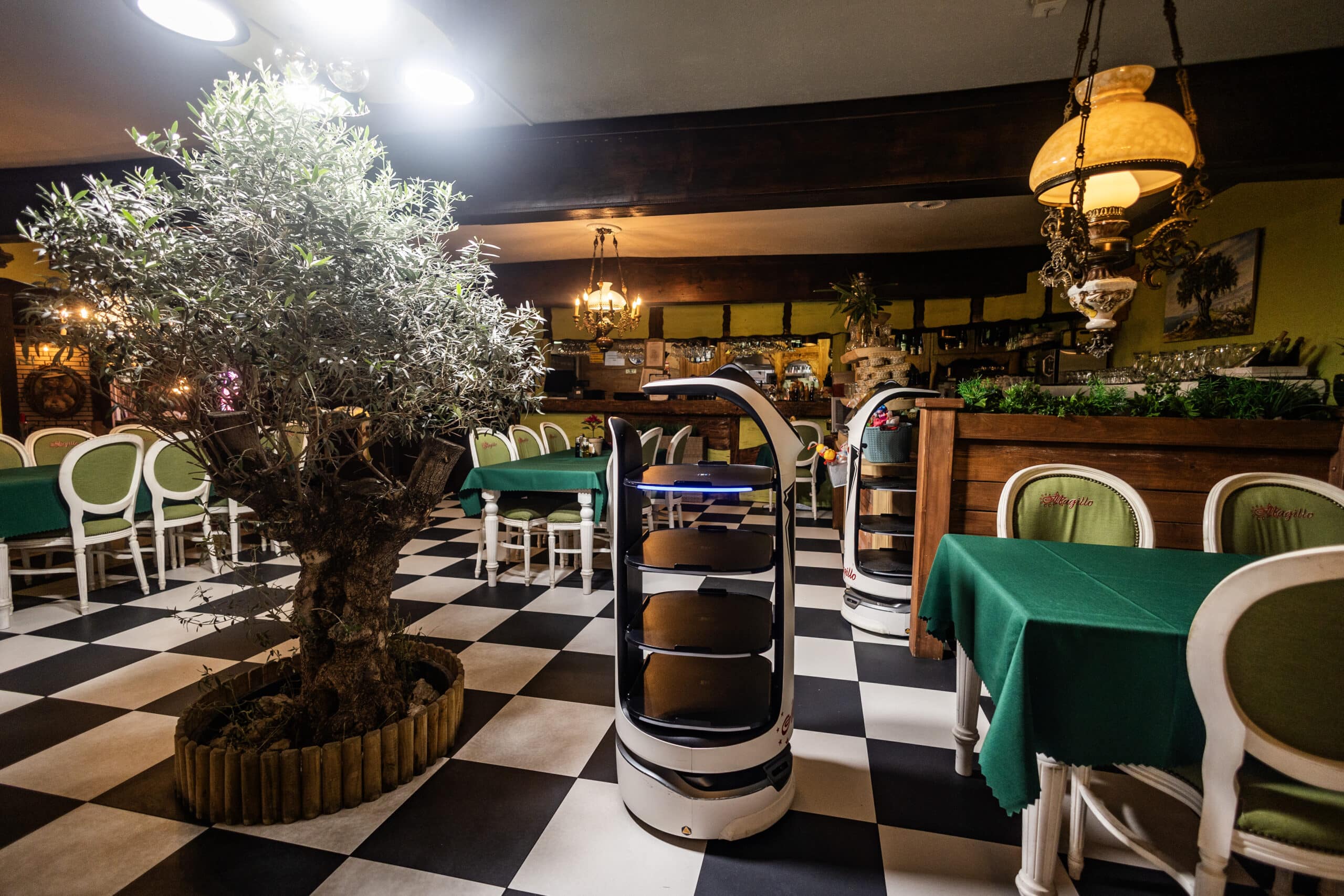 Z podróży, jak wszystko! Gdy zobaczyliśmy je za granicą, wiedzieliśmy, że to będzie hit. Wprowadziliśmy je w czasie pandemii, ale tak się przyjęły, że zostały na stałe. Nie tylko dostarczają dania do stolików, ale potrafią też zaśpiewać „Sto lat” jubilatom! Dzieci je uwielbiają, a dorośli… no cóż, również się nimi fascynują!